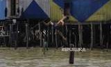 Warga bermain di aliran Sungai Musi, Palembang, Sumatra Selatan (FOTO : Wihdan Hidayat/Republika)
