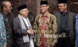 REPUBLIKA.CO.ID, JAKARTA -- Ketua Umum PP Muhammadiyah Haedar Nasir menerima Bakal Calon Wakil Presiden Ma'ruf Amin di Gedung Pusat Dakwah Muhammadiyah, Jakarta, Rabu (5/9). Kunjungan tersebut dalam rangka silaturahim dengan jajaran PP Muhammadiyah.