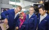 Presiden Direktur XL Axiata Dian Siswarini (kedua kiri) bersama Direktur Komersial XL Axiata Allan Bonke (kiri), Chief Premium Segment Officer XL Axiata Rashad Javier Sanchez (kedua kanan) dan Vice President XL Axiata Region Jabodetabek Bambang Parikesit (kanan) mencoba fasilitas saat pembukaan XPLOR XL Axiata Tower di Jakarta, Senin (4/9). (FOTO : Galih Pradipta/Antara)