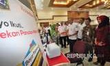 Walikota Jakarta Pusat Bayu Meghantara (ketiga kanan),Kepala Badan Pajak dan Retribusi Daerah (BPRD) DKI Jakarta, Faisal Syafruddin (keempat kanan),Pemimpin Divisi Hubungan Lembaga Bank DKI Akhirudin Siregar (kedua kanan) dan Pincapem Bank DKI Walikota Jakarta Pusat Winnie Gitadara (kanan) berama menyaksikan pembayaran PBB P2 di Kantor Walikota Jakarta Pusat, (05/09/2018). (FOTO : Bank DKI)
