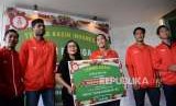 Chief of Corporate Affairs Go-Jek Indonesia Nila Marita memberikan apresiasi kepada perwakilan atlet peraih medali emas Aldila Sutjiadi di Jakarta, Kamis (6/9). (FOTO : Republika/Prayogi)