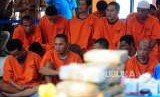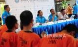 Sejumlah tersangka beserta barang bukti diperlihatkan pada rilis kasus narkotika di kantor BNN, Jakarta, Jumat (7/9). (FOTO : Republika/Putra M. Akbar)