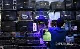 Pedagang menata barang elektronik yang dijual di pusat elektronik Glodok, Jakarta, Jumat (7/9). Fluktuasi nilai tukar rupiah terhadap dolar Amerika Serikat yang sempat mencapai Rp14.900 per dolar membuat harga barang elektronik di kawasan itu naik hingga 10 hingga 20 persen. (FOTO : Sigid Kurniawan/Antara)