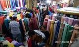Pejual menjajakan aneka jenis tekstil di Pasar Tanah Abang, Jakarta, Jumat (7/9). Industri teksil masuk dalam salah satu industri yang terdampak penguatan Dolar AS. (FOTO : Wihdan Hidayat/Republika)