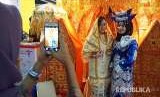Pengunjung pameran Malaysia Association Of Tour and Travel Agents (MATTA) mencoba baju adat Minangkabau di stand Indonesia di Gedung PWTC, Kuala Lumpur, Jumat (7/9). Kementerian Pariwisata merevisi target kunjungan wisatawan Malaysia ke Indonesia dari 1,4 juta orang menjadi 2.670.000 pada 2018 karena terjadi peningkatan kunjungan. (FOTO : Agus Setiawan/Antara)