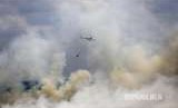 Helikopter MI-18Mtv milik Badan Nasional Penanggulangan Bencana (BNPB) melakukan pemadaman kebakaran lahan dari udara (water boombing) di Tulung Selapan, Ogan Komering Ilir (OKI), Sumatera Selatan, Sabtu (8/9). (FOTO : Nova Wahyudi/Antara)