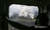 Kru helikopter MI-172Mtv milik Badan Nasional Penanggulangan Bencana (BNPB) mengamati lahan yang terbakar saat melakukan pemadaman kebakaran lahan dari udara (water boombing) di Tulung Selapan, Ogan Komering Ilir (OKI), Sumatera Selatan, Sabtu (8/9). (FOTO : Nova Wahyudi/Antara)