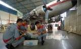 REPUBLIKA.CO.ID, JAKARTA -- Sejumlah pelajar mempelajari komponen mesin pesawat di SMK Negeri 29, Jakarta, Rabu (12/9).