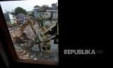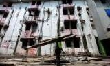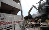 REPUBLIKA.CO.ID, JAKARTA -- Pekerja membongkar rusun Karang Anyar di Jakarta, Rabu (12/9).