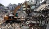 Pekerja mengoperasikan alat berat membongkar rusun Karang Anyar di Jakarta, Rabu (12/9). (FOTO : Republika/Mahmud Muhyidin)