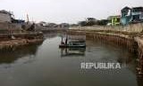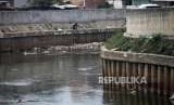 Warga melintas di samping Sungai Ciliwung, kawasan Jatinegara, Jakarta, Jumat (14/9). (FOTO : Republika/Mahmud Muhyidin)