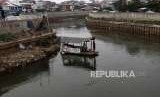 Warga menggunakan perahu eretan melintasi Sungai Ciliwung, kawasan Jatinegara, Jakarta, Jumat (14/9). (FOTO : Republika/Mahmud Muhyidin)
