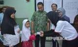Gubernur DKI Jakarta Anies Baswedan (tengah) dan Grup Head Operasional PT Bank DKI Freddy Suito Pakpahan (tengah kanan) menyaksikan petugas penyerahan KJP Plus kepada Siswi SDN 01 Lebak Bulus Gunung Balong di Jakarta 15/09. Pada kesempatan tersebut Bank DKI menyalurkan 14.475 KJP Plus ke 632 sekolah di Jakarta Selatan. (FOTO : Dok Bank DKI )