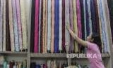 Penjual bahan kain menata dagangannya di Pusat Grosir Tanah Abang, Jakarta, Jumat (14/9). Fluktuasi nilai tukar Rupiah terhadap Dolar Amerika Serikat yang sempat mencapai Rp14.900 per dolar membuat beberapa harga bahan kain mengalami kenaikan mulai Rp 2.500-Rp 5.000 per meter. (FOTO : Muhammad Adimaja/Antara)