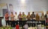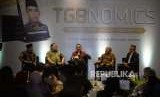 Gubernur NTB Zainul Majdi, Kepala BAPPENAS Bambang Bodjonegoro, Guru Besar Universitas Indonesia (UI) Rhenald Kasali, Pemimpin Redaksi (Pimred) Metro TV Don Bosco, dan moderator (kiri ke kanan) saat acara diskusi buku malam dana untuk gempa lombok - Sumbawa dan Peluncuran Buku TGBNOMICS di Jakarta, Jumat (14/9). (FOTO : Republika/Iman Firmansyah)