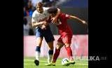 Toby Alderweireld (kiri) ditempel ketat Roberto Firmino (kanan) pada pertandingan Liga Primer Inggris antara Tottenham Hotspur melawan Liverpool di Wembley Stadium, London (15/9) waktu setempat. (FOTO : Paul Childs/Reuters)
