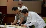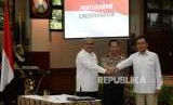 REPUBLIKA.CO.ID, JAKARTA -- Kapolri Jenderal Pol Tito Karnavian bersama Kepala SKK Migas Amien dan Kepala BPH Migas Fanshurullah Asa melakukan penandatanganan nota kesepahaman antara Polri bersama SKK Migas dan BPH Migas di Rupatama Mabes Polri, Jakarta, Senin (17/9).