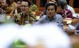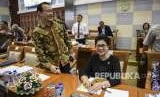 Dirut BPJS Kesehatan Fachmi Idris (kiri) mengikuti rapat kerja dengan Komisi IX DPR di Komplek Parlemen, Senayan, Jakarta, Senin (17/9). (FOTO : Republika/Prayogi)