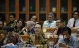 Dirut BPJS Kesehatan Fachmi Idris (kedua kanan) mengikuti rapat kerja dengan Komisi IX DPR di Komplek Parlemen, Senayan, Jakarta, Senin (17/9). (FOTO : Republika/Prayogi)