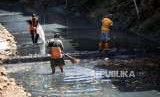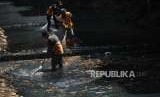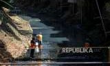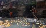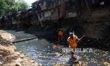 REPUBLIKA.CO.ID, JAKARTA -- Petugas Dinas Lingkungan Hidup membersihkan Kali Mati di Kawasan Jatinegara, Jakarta, Senin (17/9).