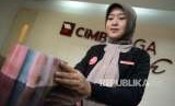 Aset Perbankan Syariah. Petugas menghitung setotan nasabah di kantor layanan CIMB Niaga Syariah, Jakarta, Selasa (18/9). Sampai pertengahan 2018 pangsa aset industri keuangan syariah mencapai 8,5 persen dari total aset industri keuangan di Indonesia. (FOTO : Wihdan Hidayat/Republika)