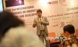 Professor of Finance in the Department of Economics and Finance in the University of New Orleans M. Kabir Hassan memberikan paparannya saat acara The 3rd Internasional Conference Indonesia Economy and Development di Jakarta, Selasa (18/9). (FOTO : Mahmud Muhyidin)