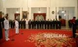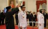 Pelantikan Gubernur NTB. Pengambilan sumpah jabatan Pasangan Gubernur terpilih NTB Zulkieflimansyah (kiri) dan Sitti Rohmi Djalilah oleh Presiden Joko Widodo pada upacara pelantikan di Istana Negara, Jakarta, Rabu (19/9). (FOTO : Republika/ Wihdan)