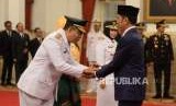 Pelantikan Gubernur NTB. Gubernur terpilih NTB Zulkieflimansyah (kiri) menerima ucapan selamat dari Presiden Joko Widodo usai pelantikan di Istana Negara, Jakarta, Rabu (19/9). (FOTO : Republika/ Wihdan)