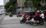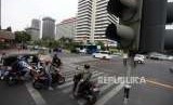 Sejumlah kendaraan motor melewati garis batas berhenti/marka lalu lintas di Kawasan Thamrin, Jakarta, Rabu (19/9). (FOTO : Republika/Mahmud Muhyidin)