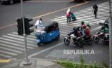 Kendaraan bajaj melewati garis batas berhenti/marka lalu lintas di Kawasan Thamrin, Jakarta, Rabu (19/9). (FOTO : Republika/Mahmud Muhyidin)