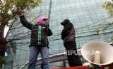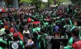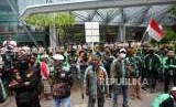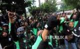 REPUBLIKA.CO.ID, JAKARTA -- Pengemudi ojek online yang tergabung dalam komunitas Gerakan Aksi Roda Dua (Garda) melakukan aksi unjuk rasa di kantor Pusat Grab Lippo Kuningan, Jakarta, Rabu (19/9).