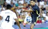 Winger Juventus Cristiano Ronaldo melepaskan umpan pada pertandingan Grup H Liga Champions antara Valencia melawan Juventus di Stadion Mestala, Valencia, Spanyol, Kamis (20/19) waktu setempat. (FOTO : Alberto Saiz/AP)