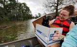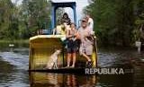 Sebuah keluarga di Karolina Utara mengungsikan hewan peliharaannya saat air bah semakin meninggi di Karolina Utara, Amerika Serikat. Badai Florence membuat hewan-hewan yang ada di kawasan ini turut menderita. (FOTO : Jonathan Drake/Reuters)
