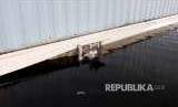 Seekor kucing melintasi jalanan yang banjir di Karolina Utara, Amerika Serikat. Badai Florence membuat hewan-hewan yang ada di kawasan ini turut menderita. (FOTO : Carlo Allegri/Reuters)