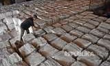 Buruh menata karet-karet yang dikemas menjadi balok di pabrik pengolahan karet Perusahaan Daerah Citra Mandiri Jawa Tengah (PD CMJT), Tlogo, Tuntang, Kabupaten Semarang, Jateng, Rabu (19/9). Menurut Asosiasi Petani Karet Indonesia (Apkarindo), harga karet di tingkat petani mengalami penurunan sejak enam bulan terakhir dari sekitar Rp10.000 per kilogram menjadi Rp5.000-Rp6.000 per kilogram. (FOTO : Aditya Pradana Putra/Antara)