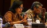 Menteri Keuangan Sri Mulyani Indrawati (kiri) bersama Wakil Menteri Keuangan Mardiasmo (kanan) memberikan keterangan pers mengenai APBN Kinerja dan Fakta (KiTa) di Jakarta, Jumat (21/9). Menurut Menkeu defisit Anggaran Pendapatan dan Belanja Negara (APBN) sampai dengan Agustus 2018 sebesar Rp150,7 triliun. Angka tersebut lebih kecil dibandingkan dengan tahun lalu yang mencapai Rp224,9 triliun. (FOTO : Rivan Awal Lingga/Antara)