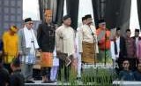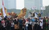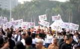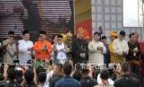 REPUBLIKA.CO.ID, JAKARTA -- Komisi Pemilihan Umum (KPU) menggelar deklarasi kampanye damai di Lapangan Monas, Jakarta, Ahad (23/9) pagi. Dua pasangan calon presiden (capres) dan cawapres menghadiri acara tersebut.