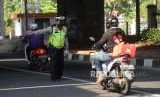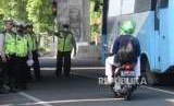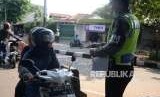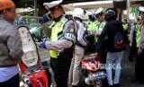 Satuan Anggota Kepolisian lalu lintas melakukan pengecekan surat kendaraan bermotor dan kelengkapan berkendara di kawasan Lenteng Agung Raya, Jakarta Selatan, Senin (24/9). (FOTO : Republika/Iman Firmansyah)