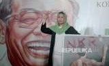 Anak Alm. Abdurahman Wahid, Yenny Wahid (ketiga kiri) berfoto bersama lukisan Joko Widodo sebagai bentuk dukungan usai membacakan surat deklarasi konsorsium kader Gus Dur di Rumah Pergerakan Politik Gus Dur, Jakarta, Rabu (26/9). (FOTO : Republika/Iman Firmansyah)