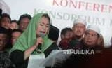 Anak Alm. Abdurahman Wahid, Yenny Wahid membacakan surat deklarasi konsorsium kader Gus Dur di Rumah Pergerakan Politik Gus Dur, Jakarta, Rabu (26/9). (FOTO : Republika/Iman Firmansyah)