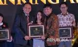 Direktur Teknologi & Operasional Bank DKI, Priagung Suprapto (kiri) menerima penghargaan Indonesia Banking Award dari pengamat perbankan, Zainal Abidin pada kategori The Best Bank in Digital Services yang diselenggarakan oleh majalah Tempo dan Indonesia Banking School di Jakarta, (26/09). (FOTO : Dok Bank DKI )