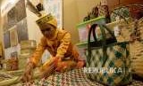 Peserta pameran melakukan proses mengannyam disalah satu stand Pameran Kriyanusa 2018 di Jakarta, Rabu (26/9). Pameran Kriyanusa yang menampilkan karya kreatif kerajinan nusantara tersebut berlangsung hingga Ahad (30/9) (FOTO : Prayogi/Republika)