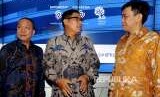 Presiden Direktur PT Federal International Finance (FIF) Margono Tanuwijaya (kanan) dan Preskom FIF Suparno Djasmin (kiri), berbincang dengan Dirut PT Bursa Efek Indonesia (BEI) Inarno Djayardi, usai pencatatan Obligasi Berkelanjutan FIF tahap IV Tahun 2018, di Bursa Efek Indonesia, Jakarta, Rabu (26/9). Obligasi senilai Rp1,3 triliun yang terdiri atas dua seri A dengan tenor 370 hari dan seri B tenor 36 bulan. (FOTO : Audy Alwi/Antara)