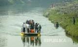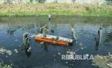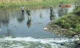 Satuan Tugas Citarum Harum melakukan pembersihan sungai Citarum, Kecamatan Bojongsoang, Kabupaten Bandung, Rabu (26/9). (FOTO : MJ07)