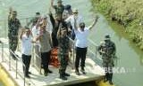 Gubernur Jawa Barat Ridwan Kamil (Emil) (kedua kanan) beserta Pangdam III Siliwangi Mayjen TNI Besar Harto Karyawan (tengah) dan Kapolda Jawa Barat Irjen Pol Agung Budi Maryoto (kedua kiri) meninjau sungai Citarum, Kecamatan Bojongsoang, Kabupaten Bandung, Rabu (26/9). (FOTO : Republika/Edi Yusuf)