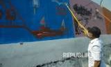 Gubernur Jawa Barat Ridwan Kamil (Emil) melukis di tembok kawasan sungai Citarum, Kecamatan Bojongsoang, Kabupaten Bandung, Rabu (26/9). (FOTO : MJ07)