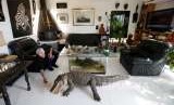 Philippe Gillet, 67 year-old Frenchman who lives with more than 400 reptiles and tamed alligators, gives chicken to his alligator Ali in his living room in Coueron near Nantes, France. (FOTO : Stephane Mahe/Reuters)