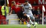 Jesse Lingard (kiri) berebut bola dengan Bradley Johnson pada pertandingan putaran ke-3 Piala Liga Inggris di Stadion Old Trafford in Manchester, Selasa (25/9) waktu setempat. (FOTO : Martin Rickett/PA via AP)