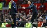 Manajer Derby County Frank Lampard (kiri) dan manajer Manchester United Jose Mourinho (kiri), pada pertandingan babak ke-3 Piala Liga Inggris di Stadion Old Trafford in Manchester, Selasa (25/9) waktu setempat. (FOTO : Martin Rickett/PA via AP)