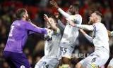 REPUBLIKA.CO.ID, MANCHESTER -- Manchester United (MU) tersingkir dari Piala Liga setelah kalah adu penalti 7-8 (2-2) dari tim Divisi Championship, Derby County, di Old Trafford, Rabu (26/9) dini hari WIB. Laga putaran ketiga ini diwarnai sejumlah drama, di antaranya kartu merah untuk kiper MU Sergio Romero.